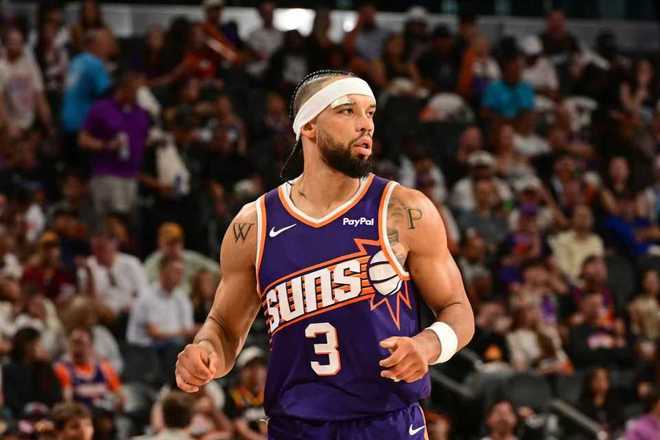 太陽:狄龍22分,布克31分5籃板3助攻6失誤5犯規(guī),奧尼爾3記三分12分,阿倫3記三分18分7助攻。