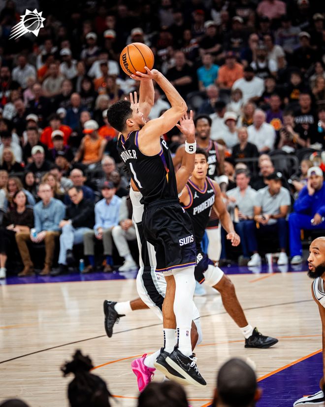 布克28+13太陽(yáng)送馬刺賽季首敗,卡斯?fàn)?6+7+5文班亞馬僅9+9