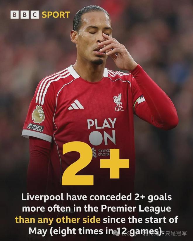 利物浦在包括本場在內(nèi)的最近12場英超比賽中,有8場丟球2球或以上,其中本賽季8輪比賽有5場丟2球。