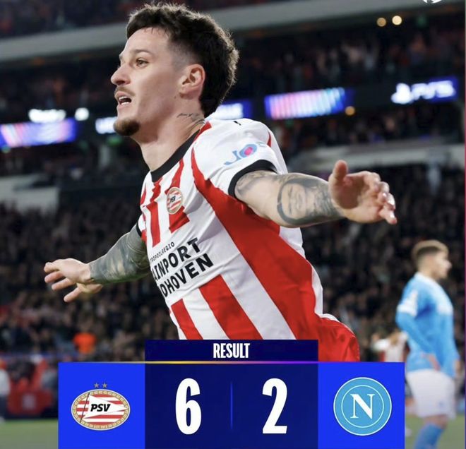 孔蒂執(zhí)教的那不勒斯上賽季意甲奪冠,本賽季又簽下了德布勞內(nèi)等強(qiáng)援。在歐冠客場與埃因霍溫的比賽中,那不勒斯2-6大比分輸球。本場比賽麥克托米奈為那不勒斯打入2球,前鋒盧卡在球隊1-3落后時被紅牌罰下,那不勒斯后衛(wèi)布翁焦?fàn)栔Z烏龍,埃因霍溫的丹尼斯曼雙響,薩伊瓦里、佩皮以及德里烏赫各進(jìn)1球,孔蒂在歐冠中確實沒什么建樹。